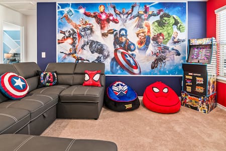 Marvel TV-Room | NASA Bedroom | Game Room | Pool