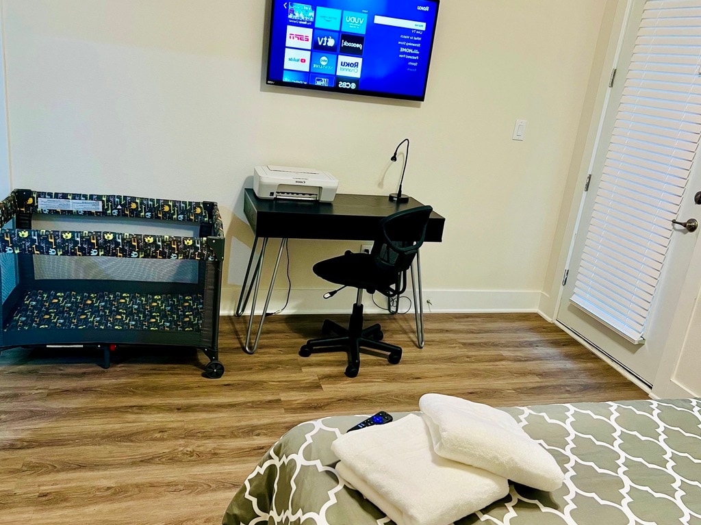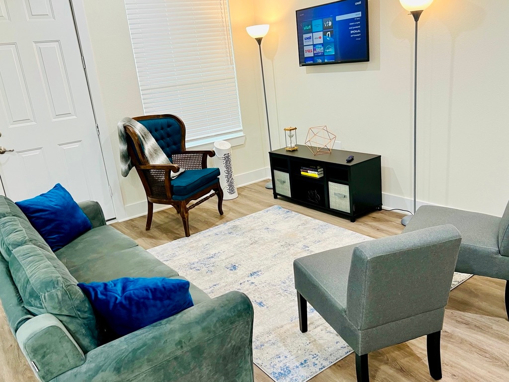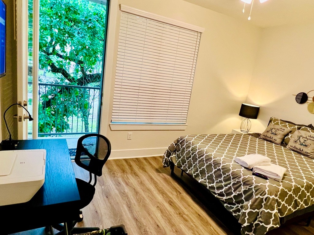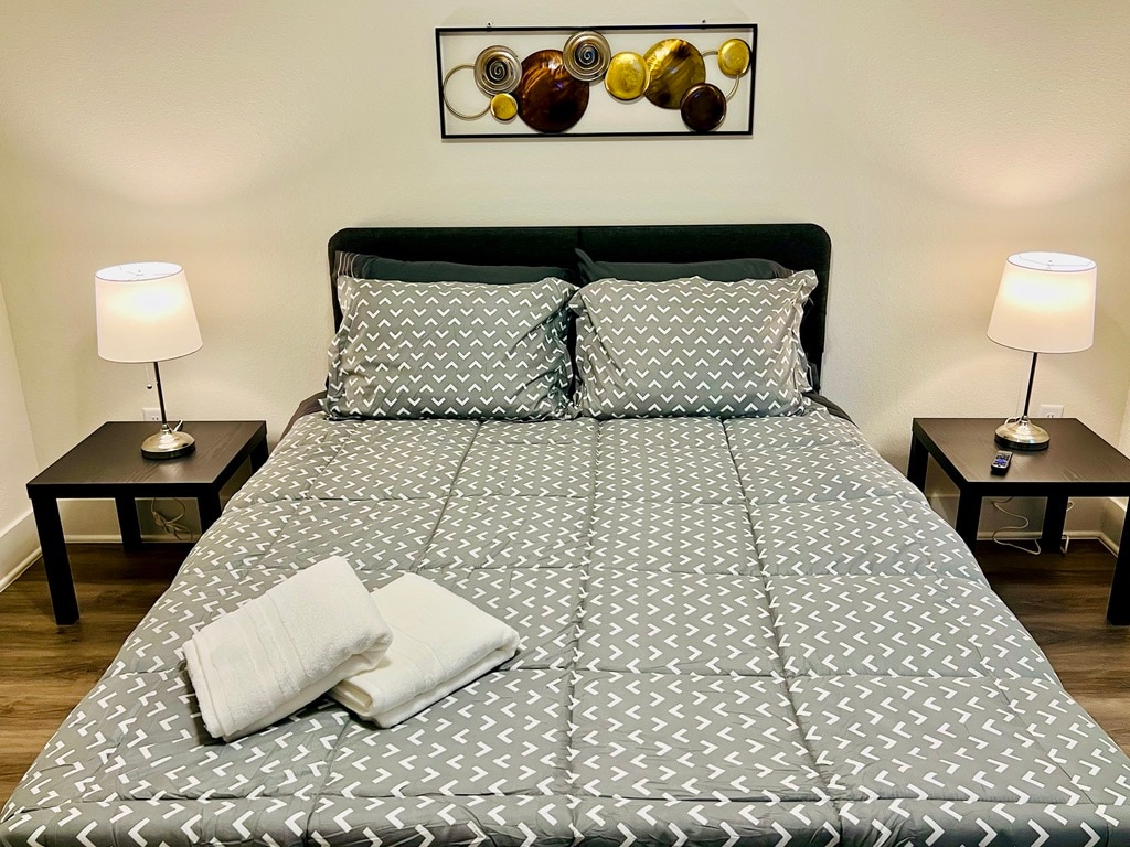 The WoodlandsThis 2nd floor apartment is located in the heart of The Woodlands, pretty close to main attractions like Cynthia Woods Mitchell Pavilion, Woodlands Mall, Market Street and excellent bars and restaurants around. The Kitchen is fully equipped, 2 Bedrooms with Queen size bed, 2 full baths with shower and tub, living room, dinning table and air mattress for more 2 guests, pack'n'play, all bedrooms with Smart TV, FREE washer & dryer inside, FREE fast Wi-Fi, FREE parking. Book it now!