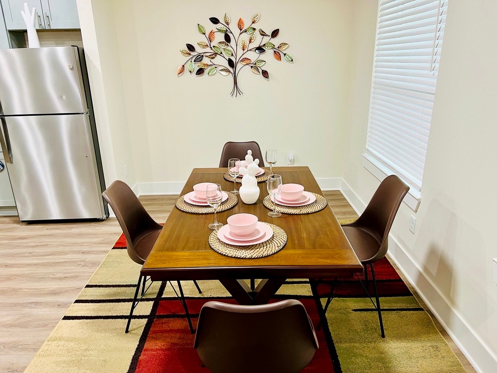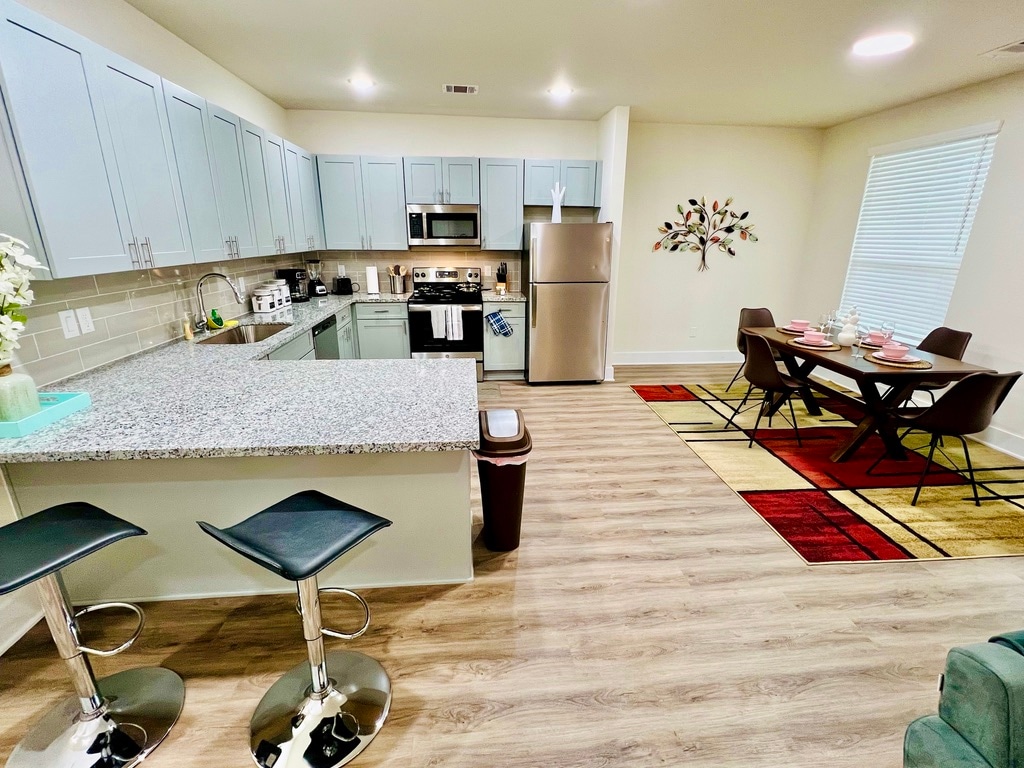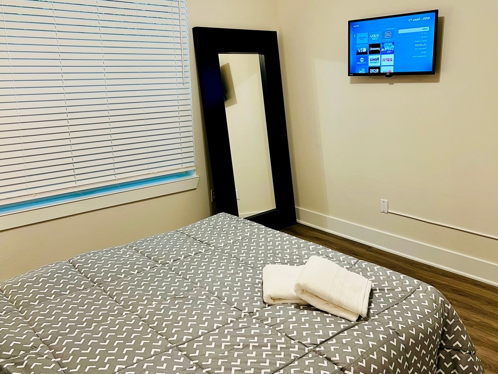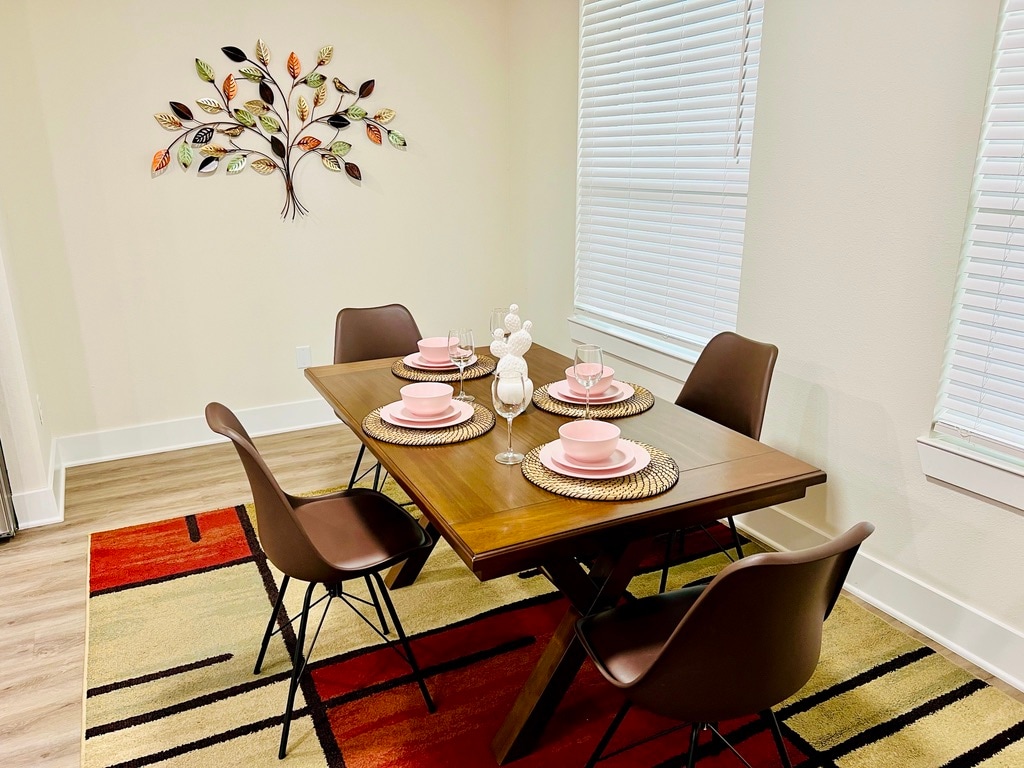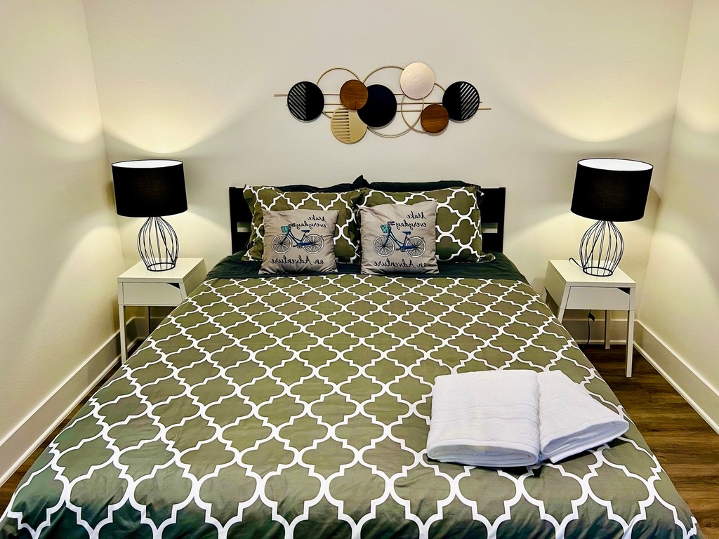 The WoodlandsThis 2nd floor apartment is located in the heart of The Woodlands, pretty close to main attractions like Cynthia Woods Mitchell Pavilion, Woodlands Mall, Market Street and excellent bars and restaurants around. The Kitchen is fully equipped, 2 Bedrooms with Queen size bed, 2 full baths with shower and tub, living room, dinning table and air mattress for more 2 guests, pack'n'play, all bedrooms with Smart TV, FREE washer & dryer inside, FREE fast Wi-Fi, FREE parking. Book it now!